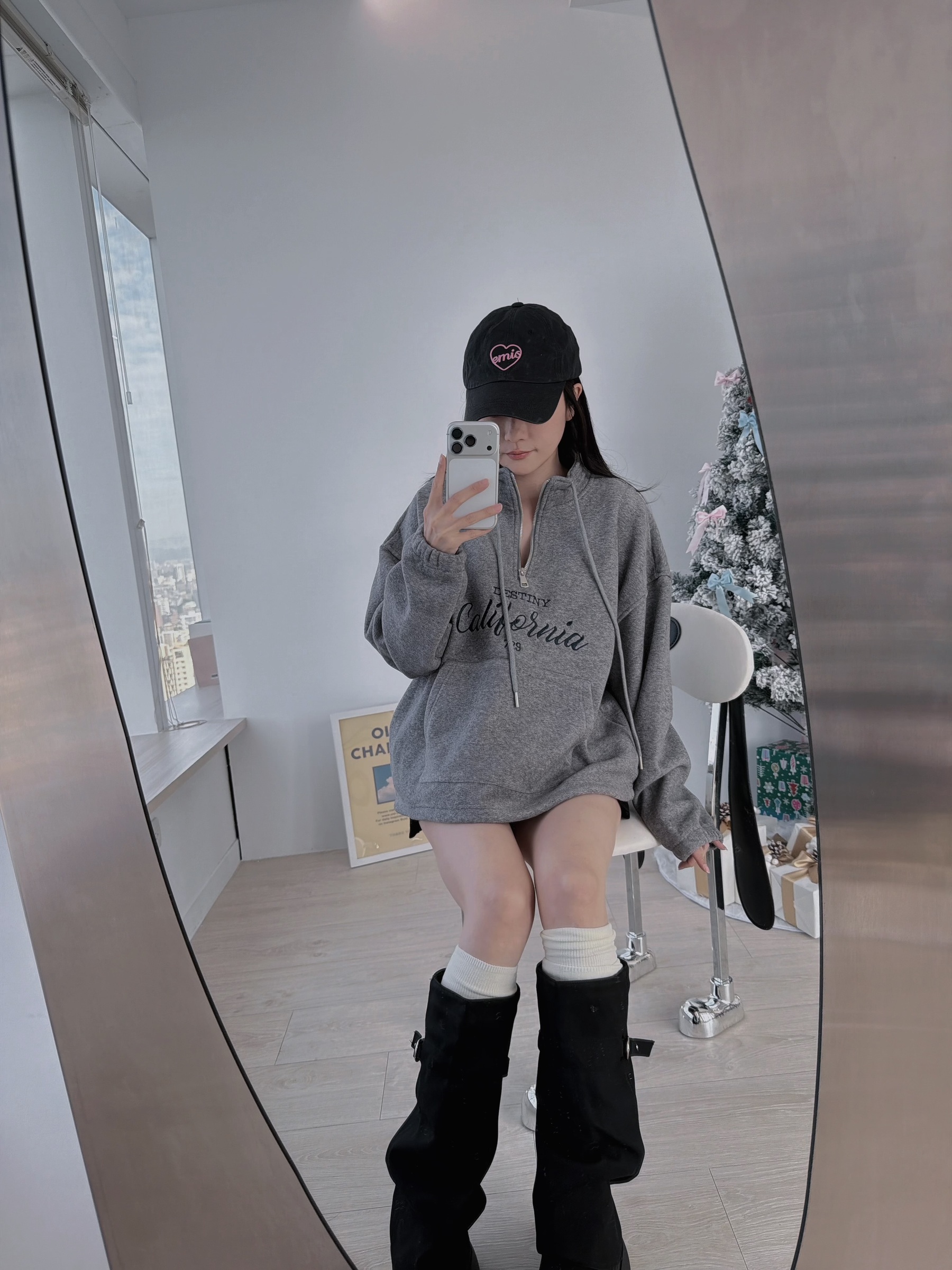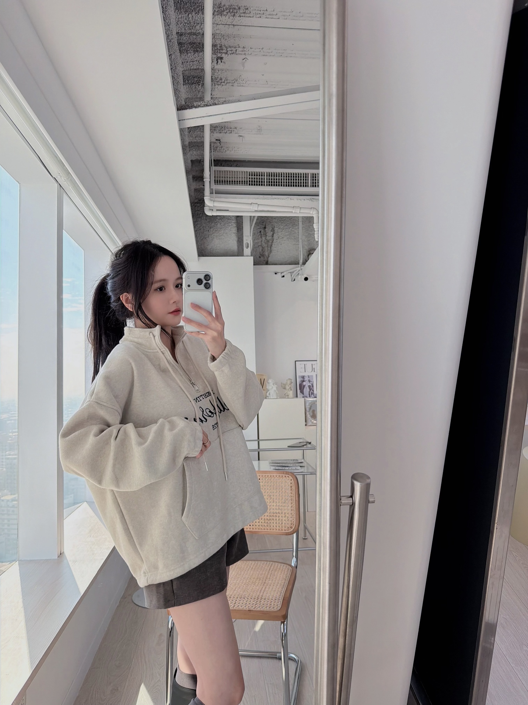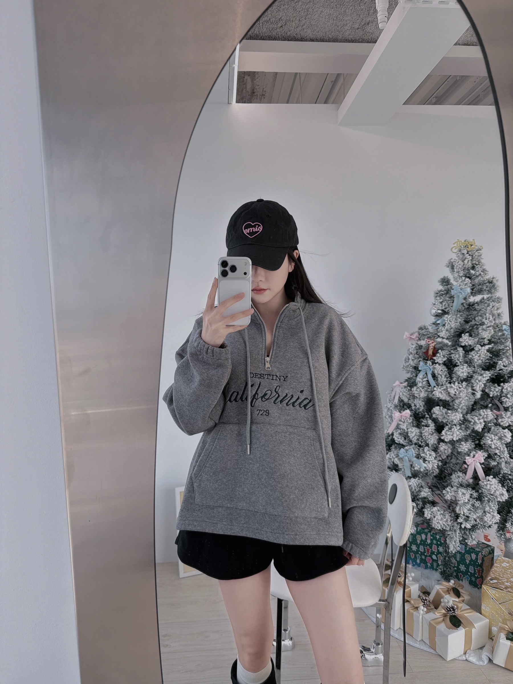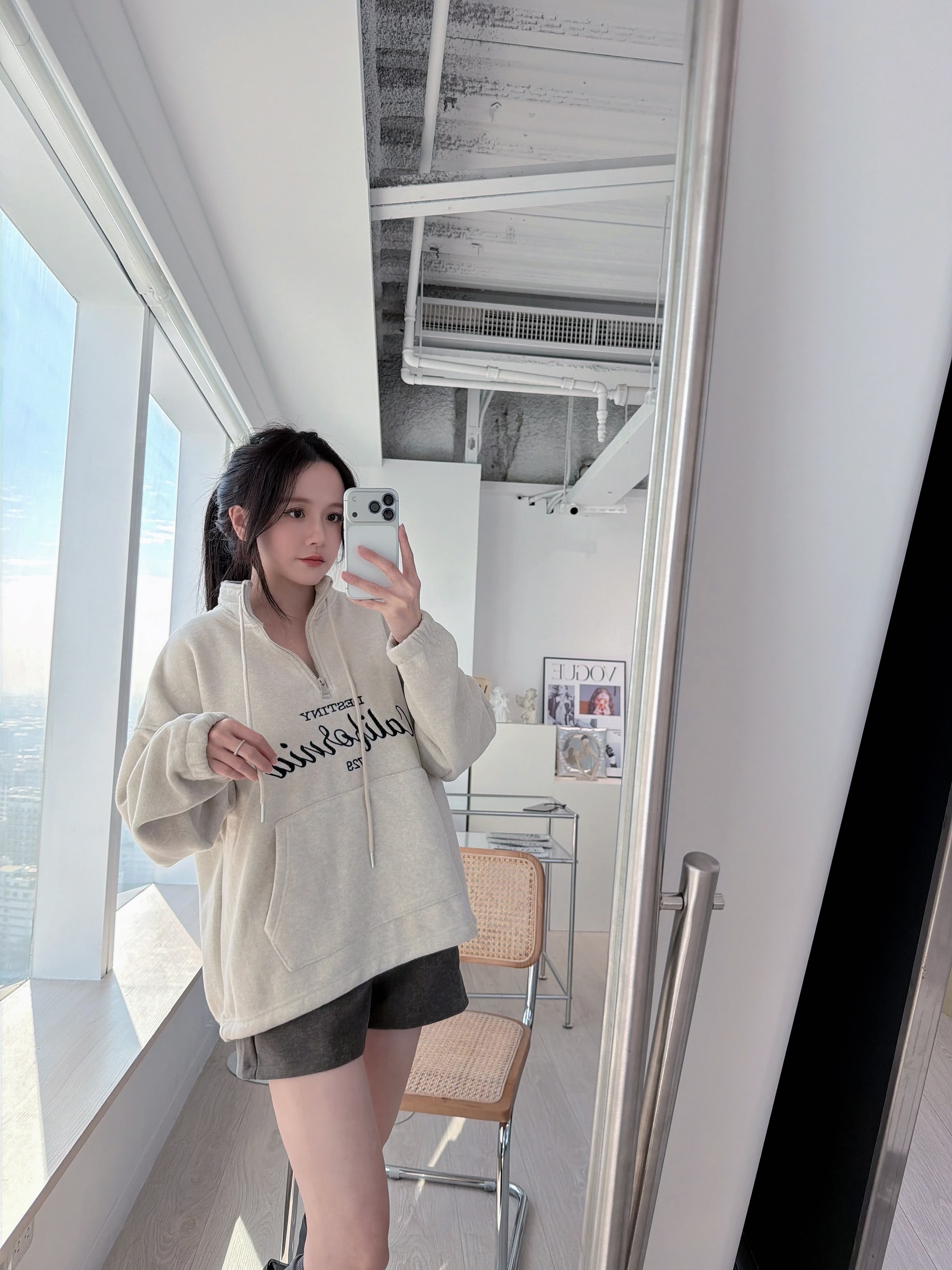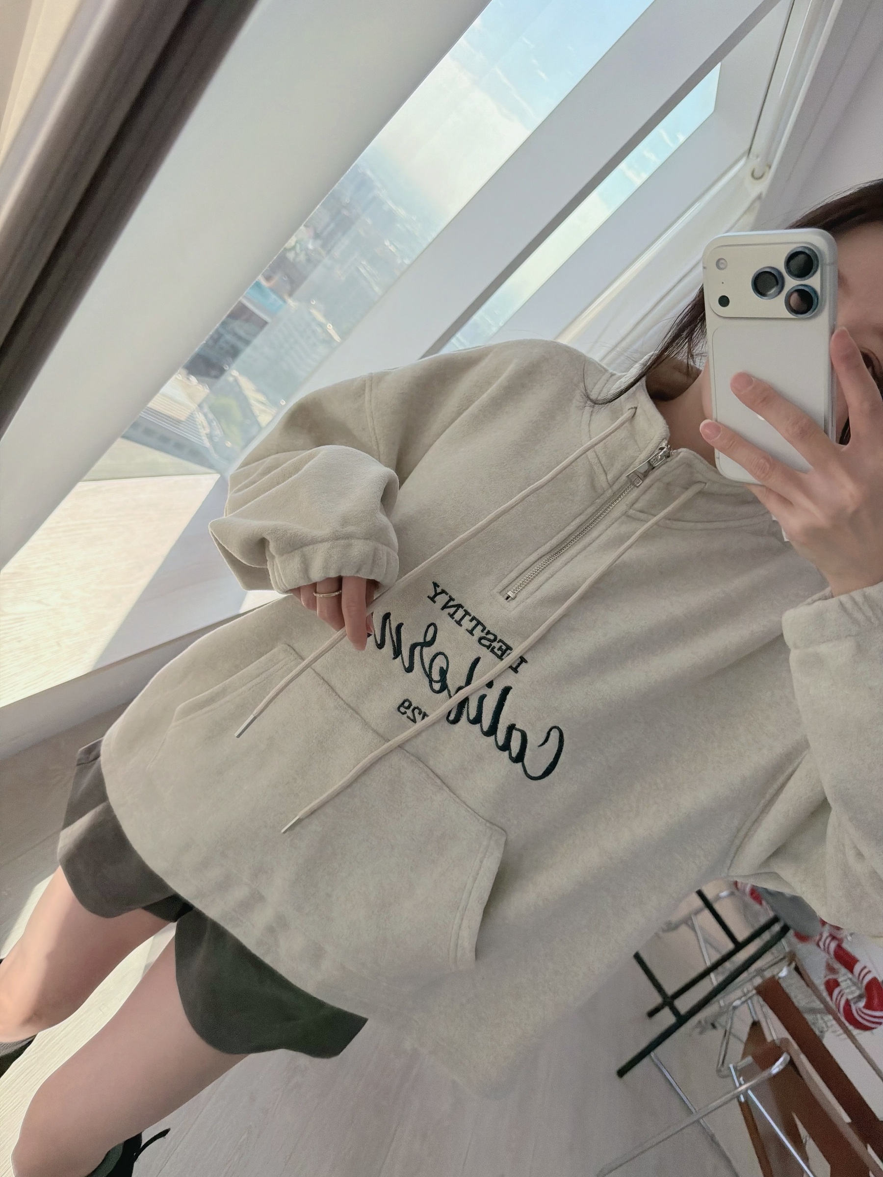 簡約加州字母半拉鍊毛巾布上衣