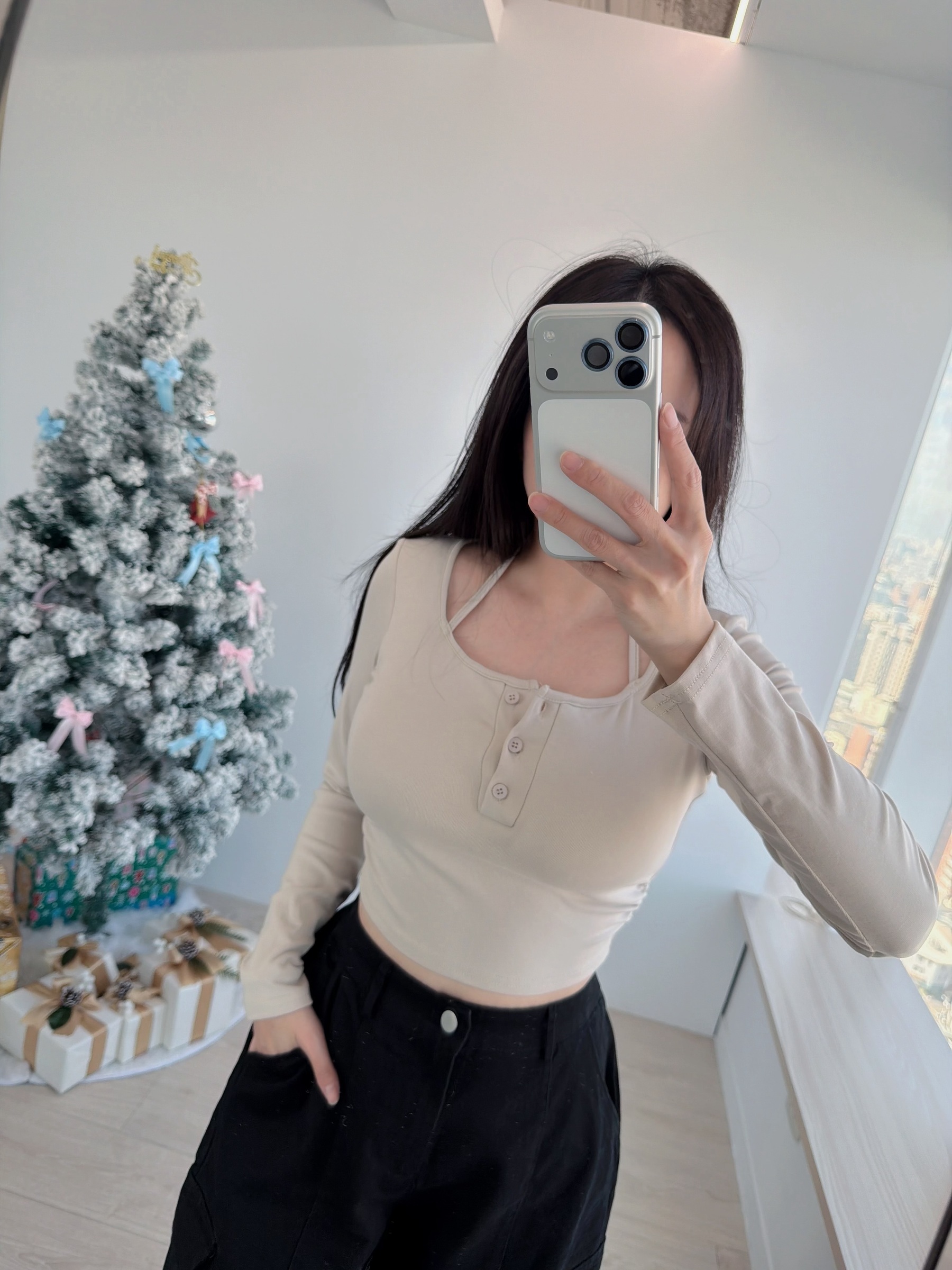 「氛圍感疊穿」假兩件掛脖罩杯排扣上衣