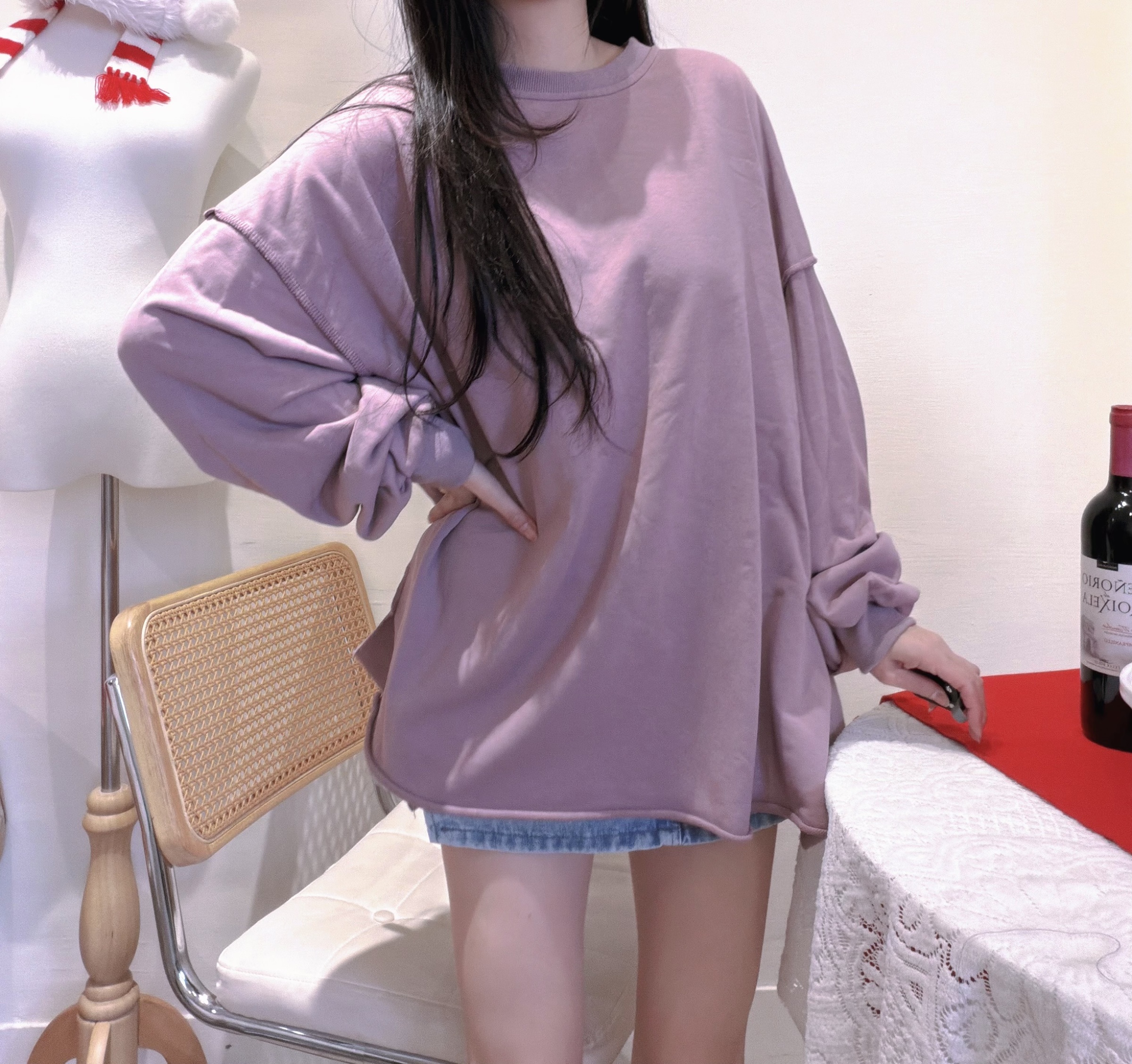 毛圈寬鬆泡泡袖大學踢( 7 COLORS )